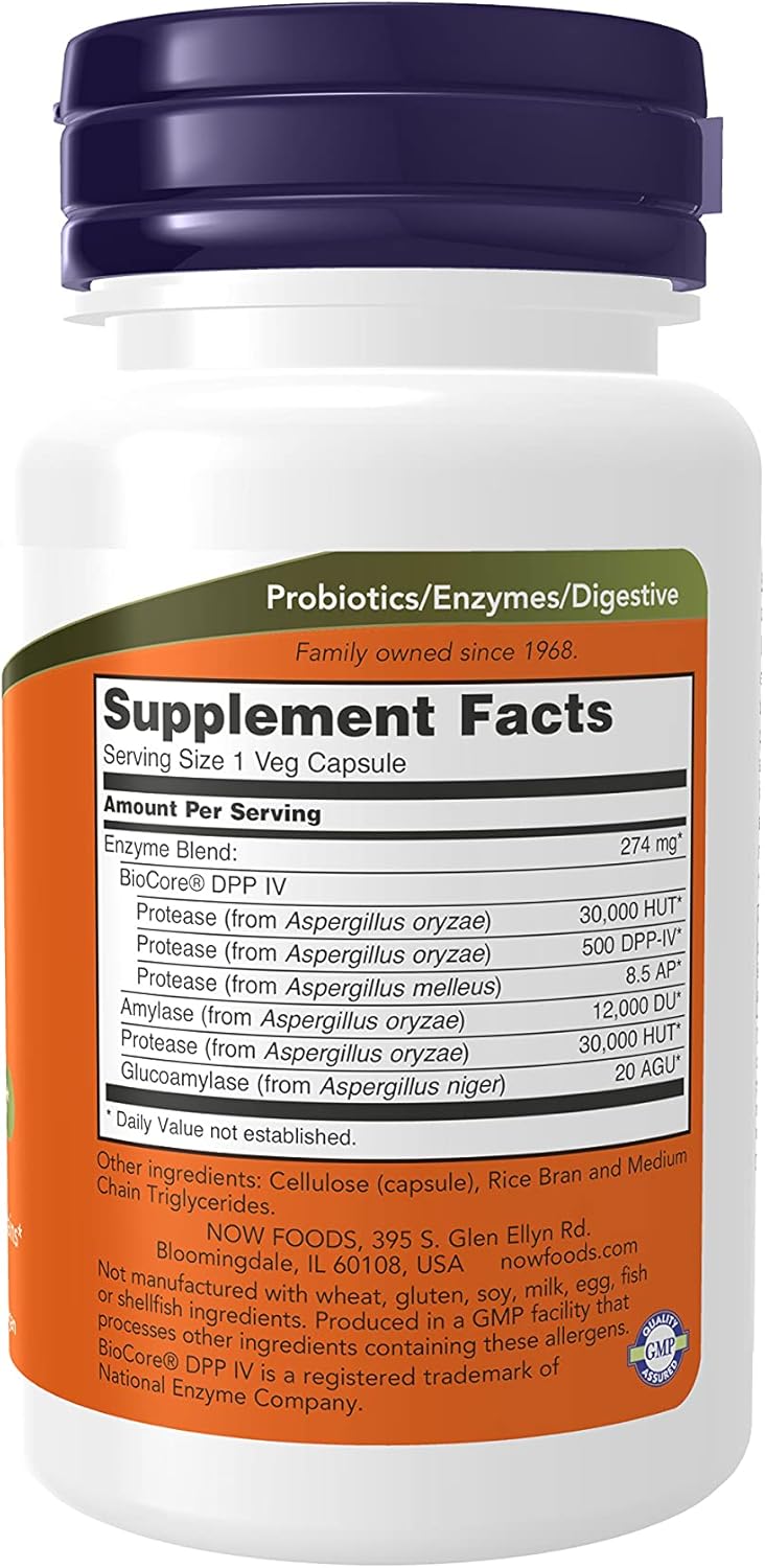 BioCore® DPP IV, Protease (from Aspergillus oryzae), Protease (from Aspergillus oryzae), Protease (from Aspergillus melleus), Amylase (from Aspergillus oryzae), Protease (from Aspergillus oryzae), Glucoamylase (from Aspergillus niger), Other Ingredients: Cellulose (capsule), Rice Bran, Medium Chain Triglycerides and Maltodextrin. Contains no sugar, salt, yeast, wheat, gluten, soy, milk, egg or shellfish.