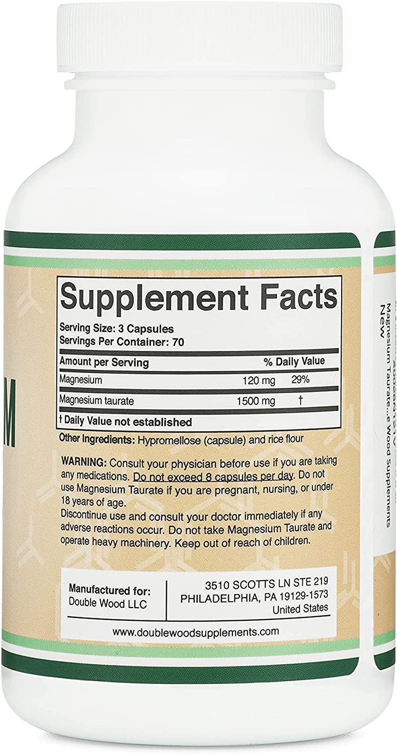 Magnesium Taurate 1,500mg, Other Ingredients: Hypromellose (vegan capsule)