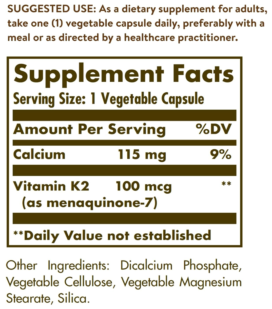 If you are pregnant, nursing, taking any medications or have any medical condition, please consult your healthcare practitioner before taking any dietary supplement. Discontinue use and consult your healthcare practitioner if any adverse reactions occur. Keep out of reach of children. Store at room temperature. Do not use if outer bottle seal is missing or damaged. All forms of Vitamin K may interact with blood thinning medications. If you are taking such medicines please consult with your healthcare practitioner before taking this product.